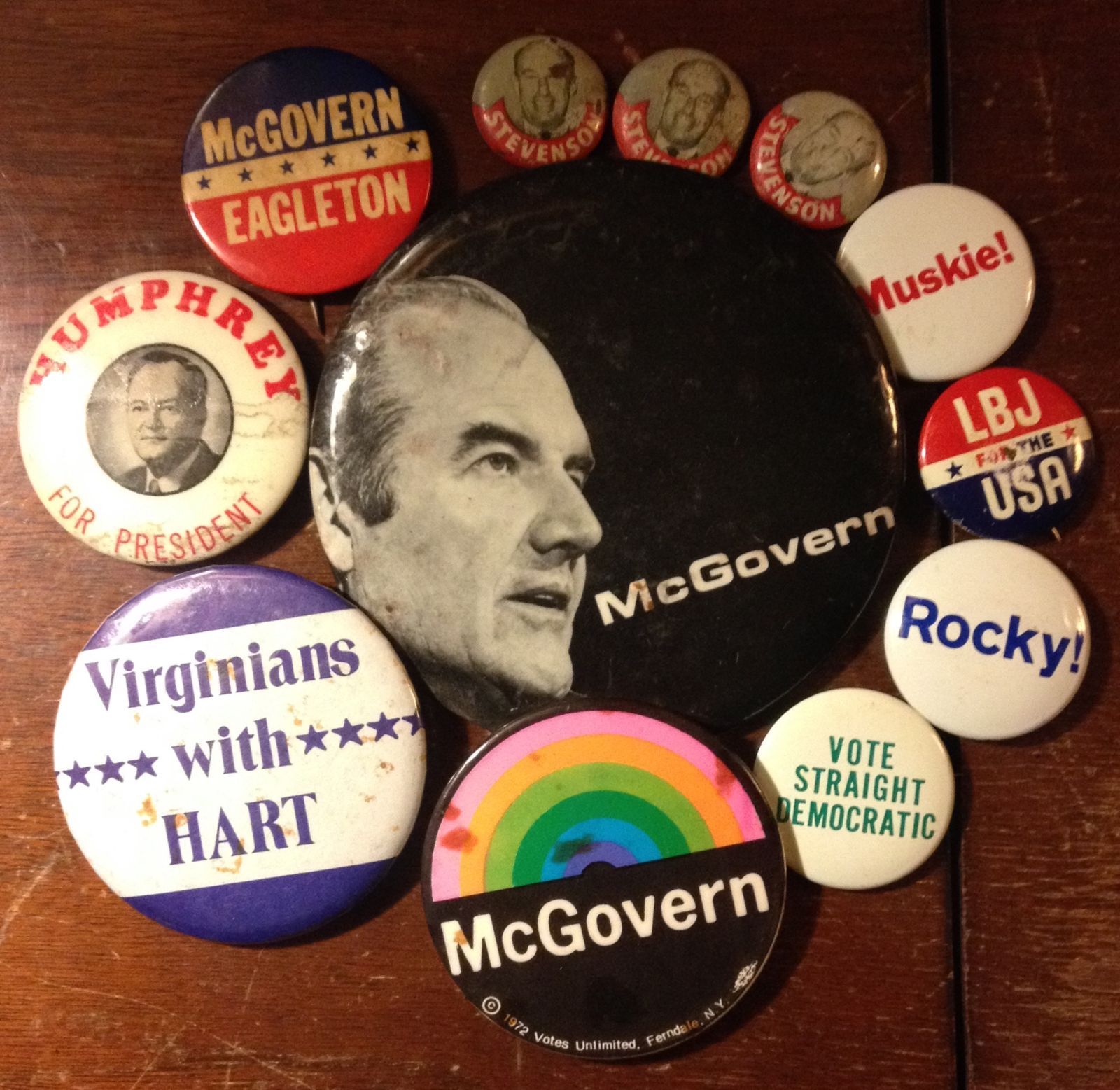 LOT OF 12 VINTAGE POLITICAL PIN BACKS - 10 DIFFERENT 11 PRESIDENTIAL CAMPAIGNS