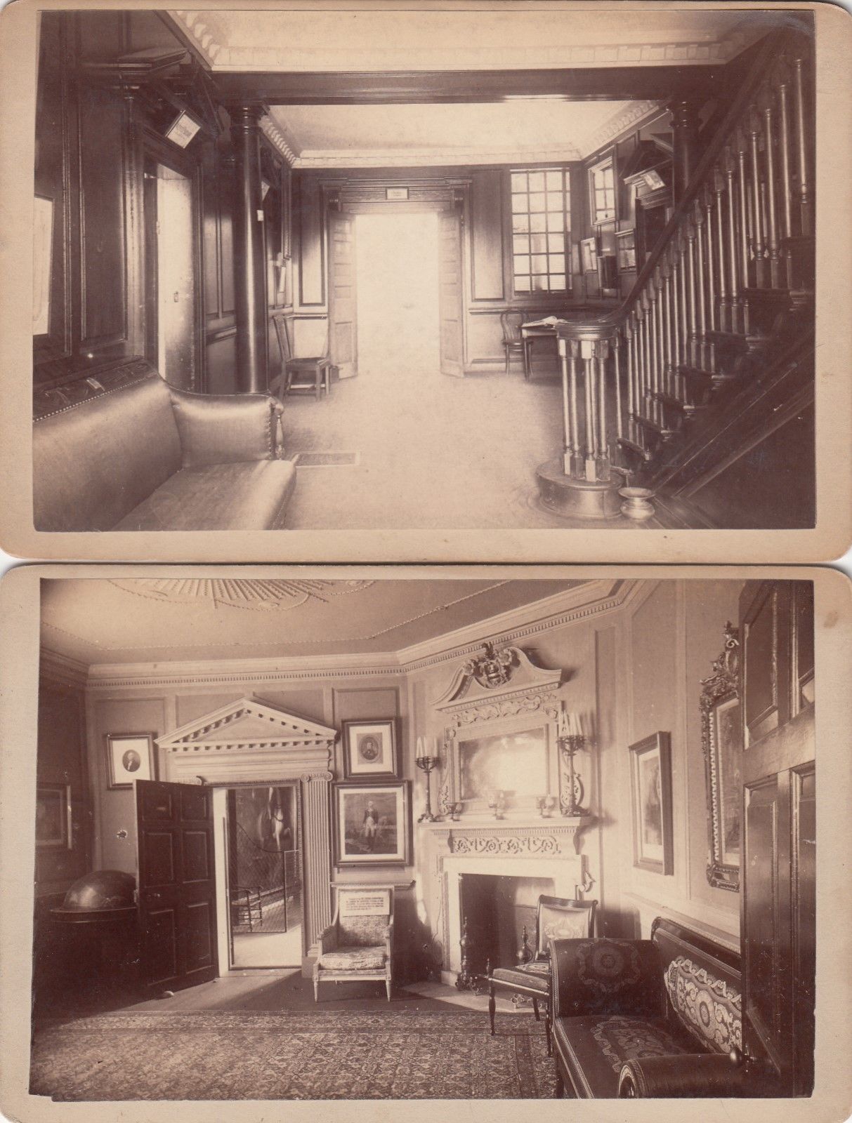 2 Mt. Vernon cabinet card photographs parlor hallway George Washington