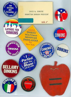 Title (ebay affiliate link): 12 Vintage 80s New York Mayor Dinkins Political Pinback Buttons 2 Paper Pinbacks