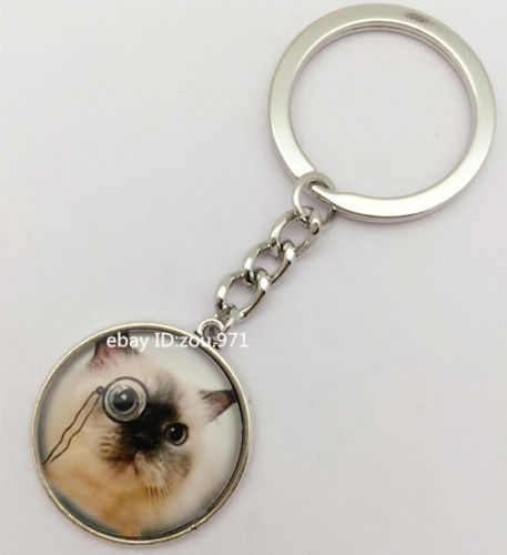 Title (ebay affiliate link): Vintage cat Cabochon Tibetan silver Glass Chain Pendant Metal Key Ring