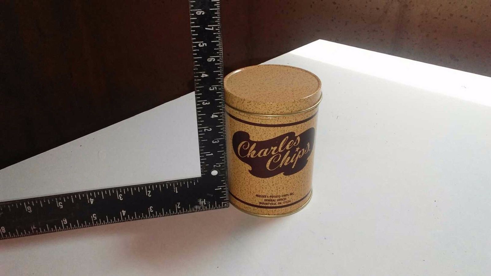 Title (ebay affiliate link): SMALL MUSSER`S / CHARLES CHIPS MOUNTVILLE PA. POTATO CHIPS MINI TIN 5" TALL