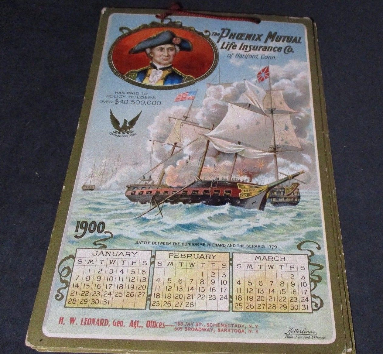 Title (ebay affiliate link): RARE 1900 CALENDAR Phoenix Mutual Life Insurance Hartford CT. Paul Jones W31 PZ