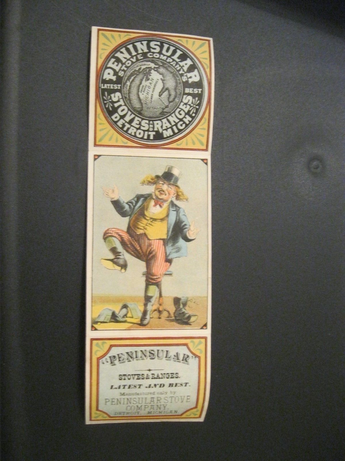 Victorian Trade Card 1800''s UNCLE SAM Peninsular Stove Detroit MI Cowboy Boot 75