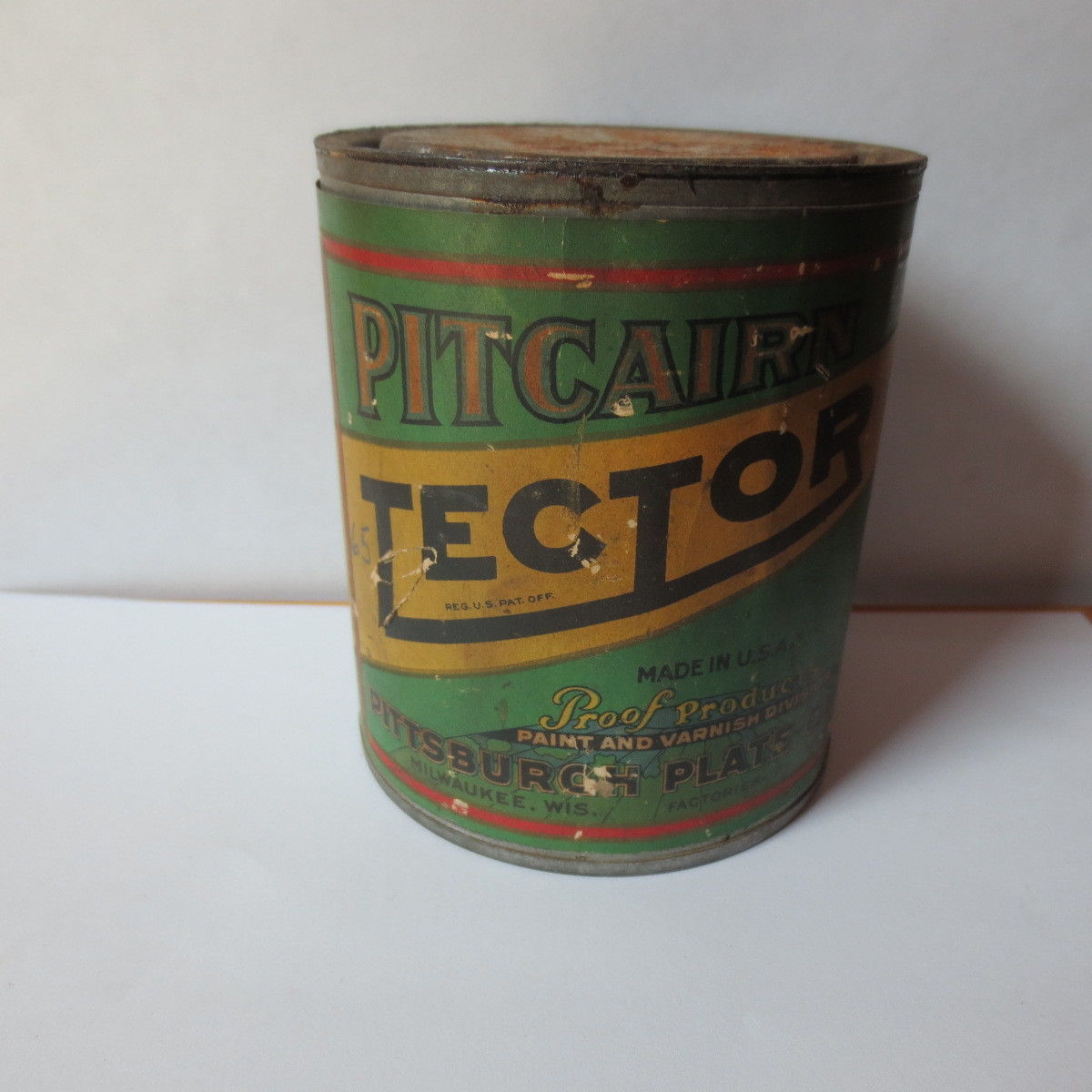 Title (ebay affiliate link): Vintage "Pittsburgh Plate Glass Co. Can Pitcairn Tector Sphinx Design One Pint
