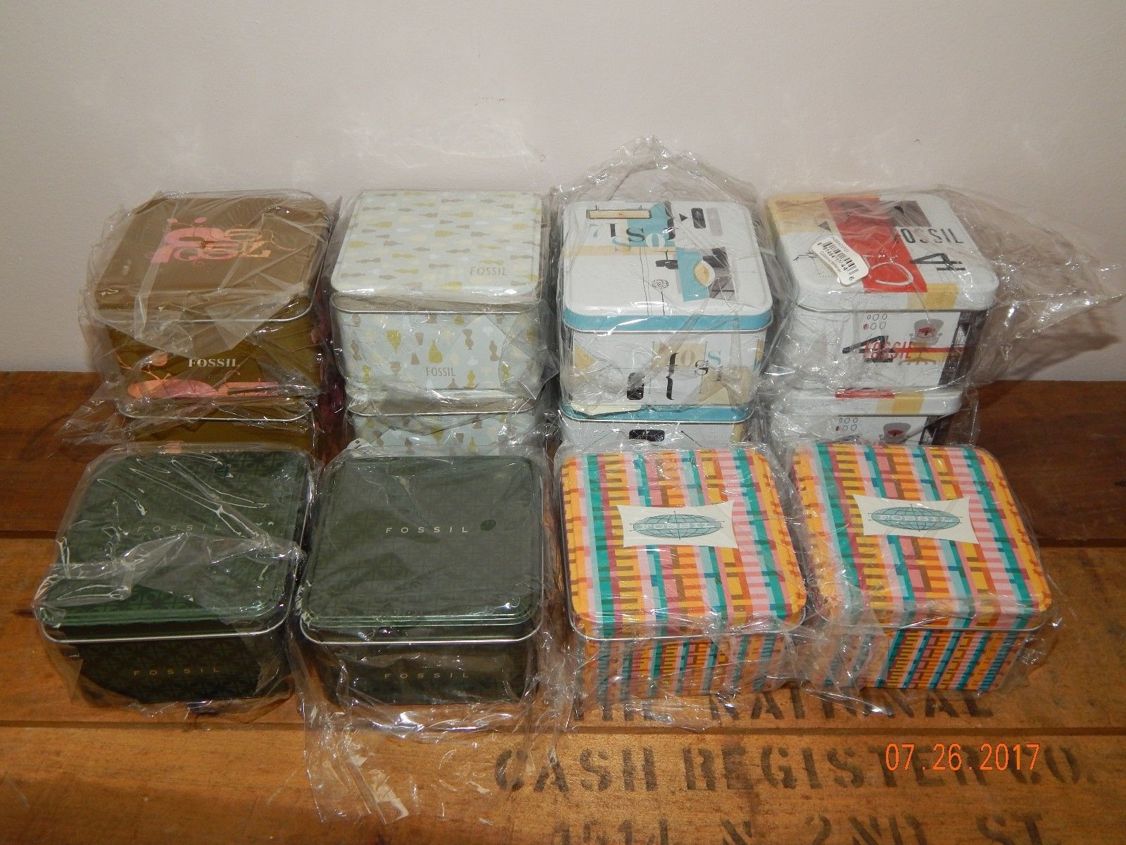 Title (ebay affiliate link): New in Packages Fossil Tins, Lot Of 12 Collectible watch boxes