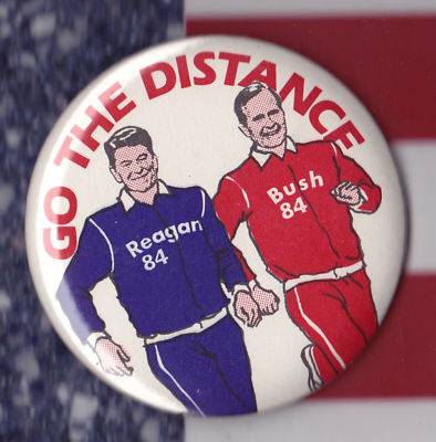 Title (ebay affiliate link): GO THE DISTANCE POLITICAL BUTTON PIN REAGAN BUSH 1984
