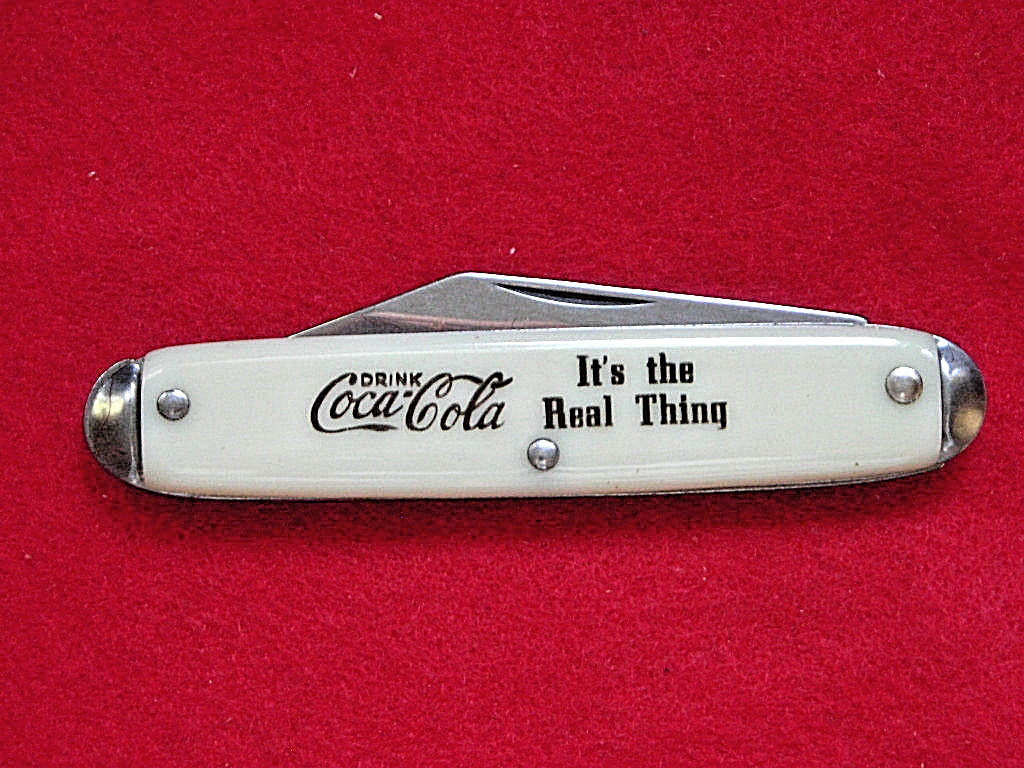 VINTAGE RARE USA COCA COLA SINGLE BLADE POCKET KNIVE WITH BLACK LETTERS