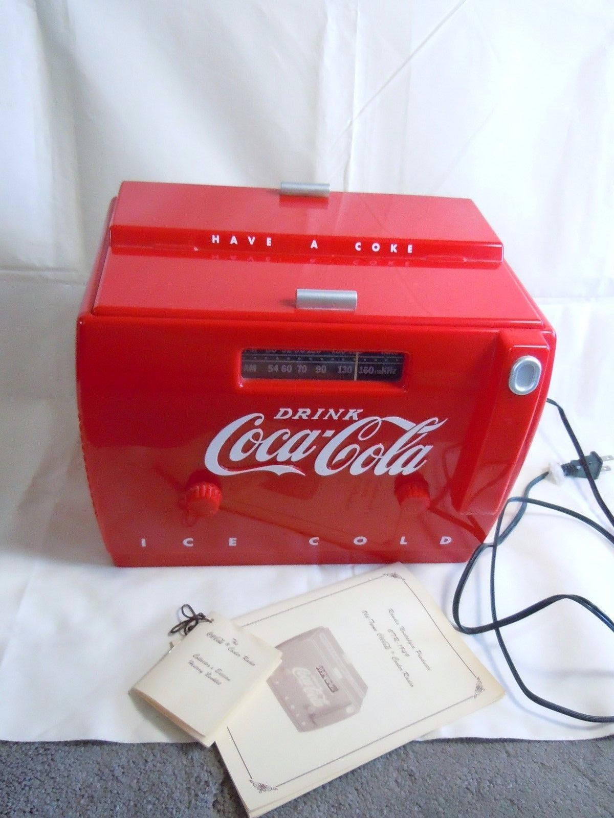 Title (ebay affiliate link): Randix Old-Tyme Coca Cola Cooler Radio OTR-1949 AM FM Tape Player Radio