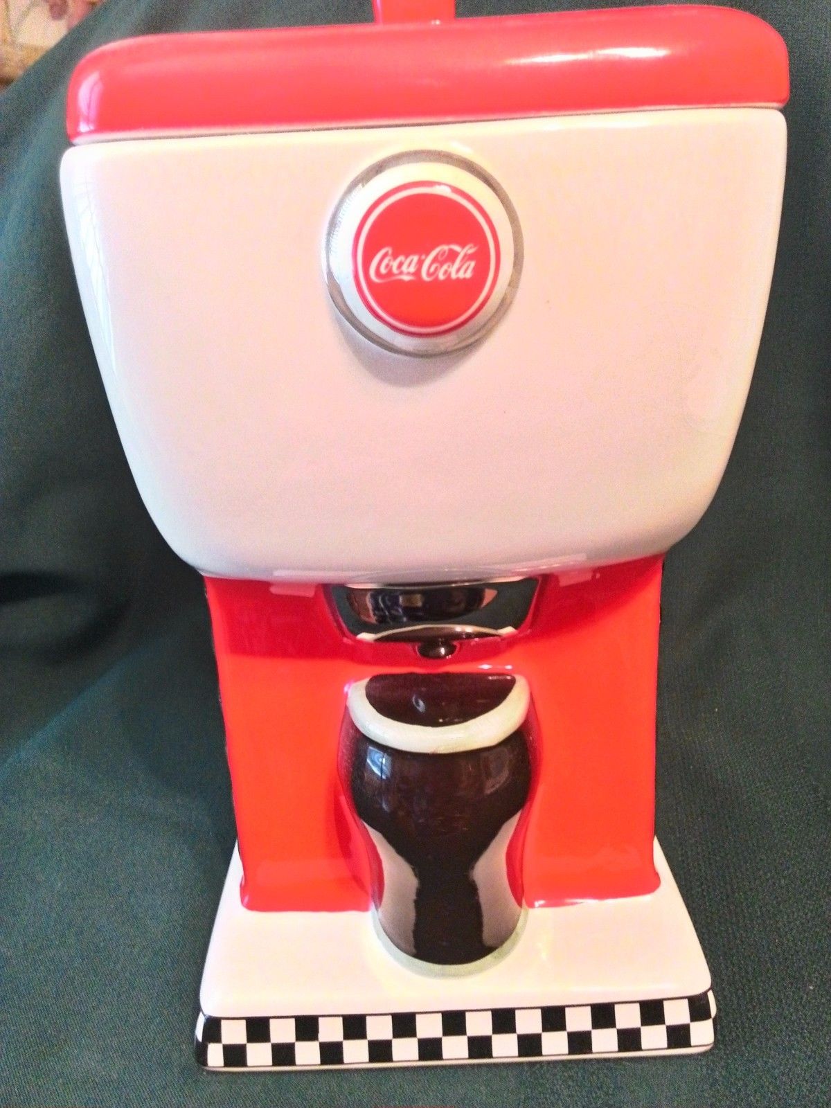 Title (ebay affiliate link): Big Coca- Cola White top Beverage Dispenser Cookie Jar