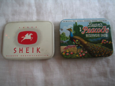 OLD VTG CONDOMS TINS DEAN`S PEACOCK`S & SHEIK 1930-40`S