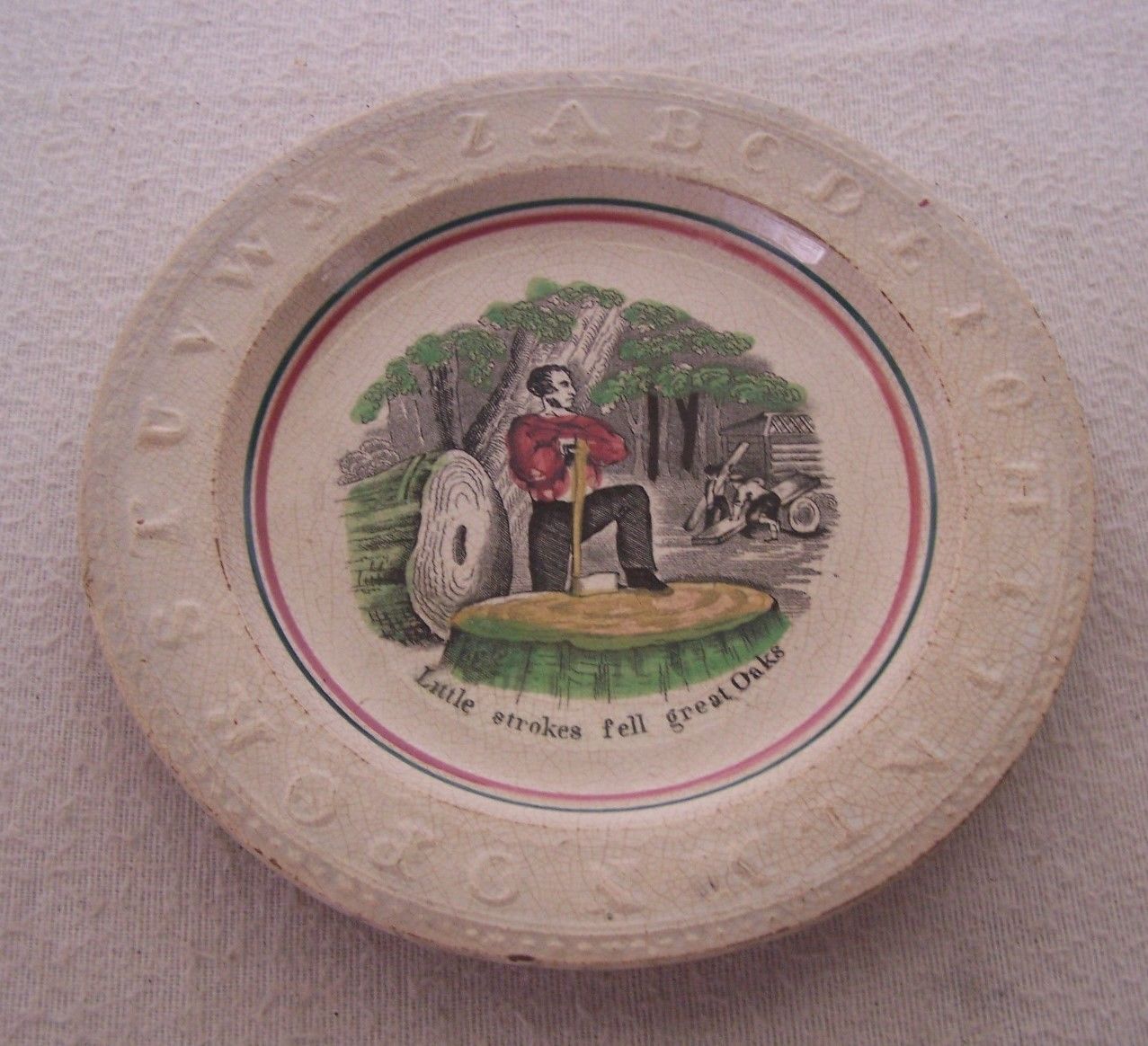 Title (ebay affiliate link): 19th C. ABC / Alphabet Plate - Abe Lincoln - Little Strokes Fell Great Oaks -NR