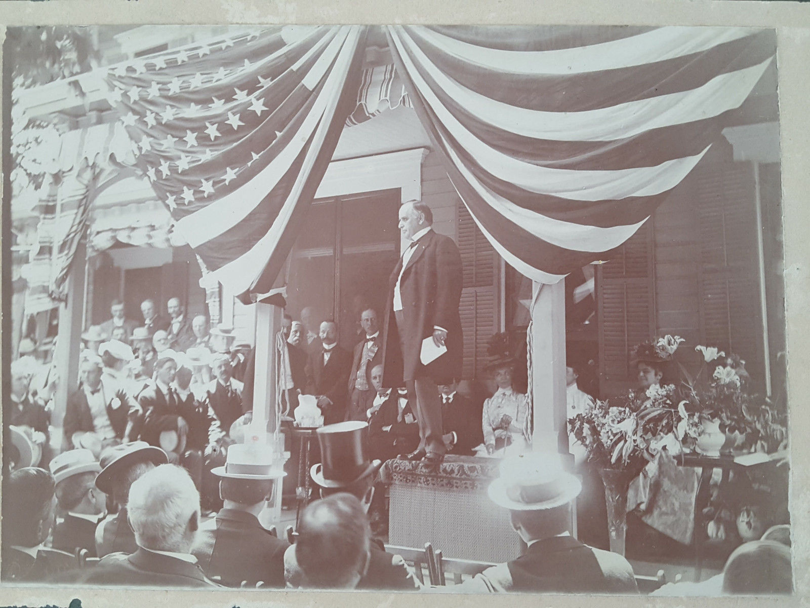 Big Cabinet Photo 1900 President W. McKinley + Roosevelt behind a Pilar!