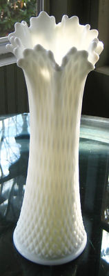 WESTMORELAND GLASS LARGE SWUNG MILK GLASS VASE MARKED