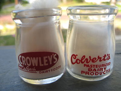 2 Creamer Milk Bottles,Crowley,Colvert,1/2 Oz.Okla,Ind.