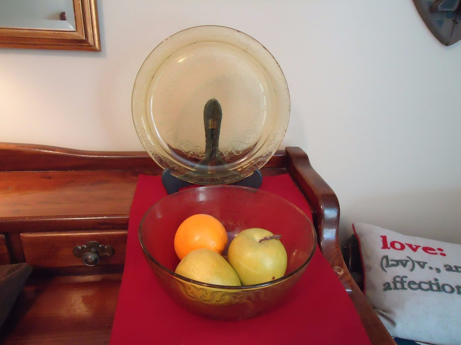 Title (ebay affiliate link): Vintage 30''s - 40''s Yellow Depression Glass Platter & Fruit Bowl Lace LOW $$$$