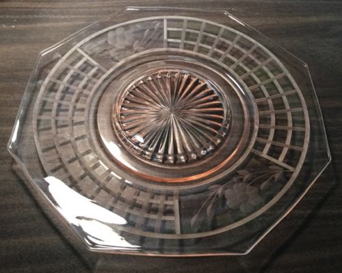 Pink Depression Pressed Glass Octagon Plate #1818