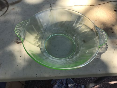 Title (ebay affiliate link): Vintage Vaseline Green Depression Glass Bowl - Shell Fan Handled Serving Dish