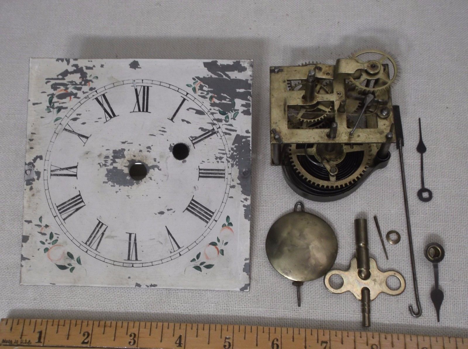 Title (ebay affiliate link): ANTIQUE 1 DAY TIME ONLY AMERICAN COTTAGE CLOCK MOVEMENT-DIAL-PEND-HANDS & KEY