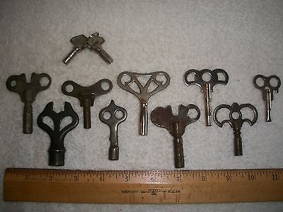 Antique Vintage Lot of 10 Steel and Iron Clock Keys - E