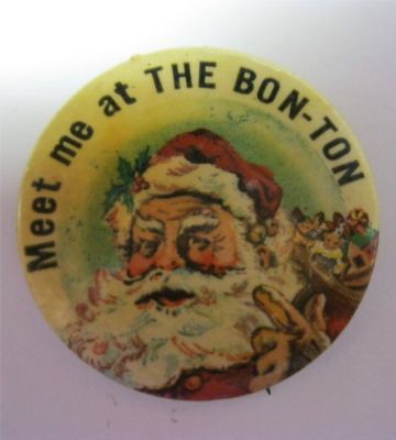 Vintage SANTA CLAUS Pin "Meet Me At The BON-TON"