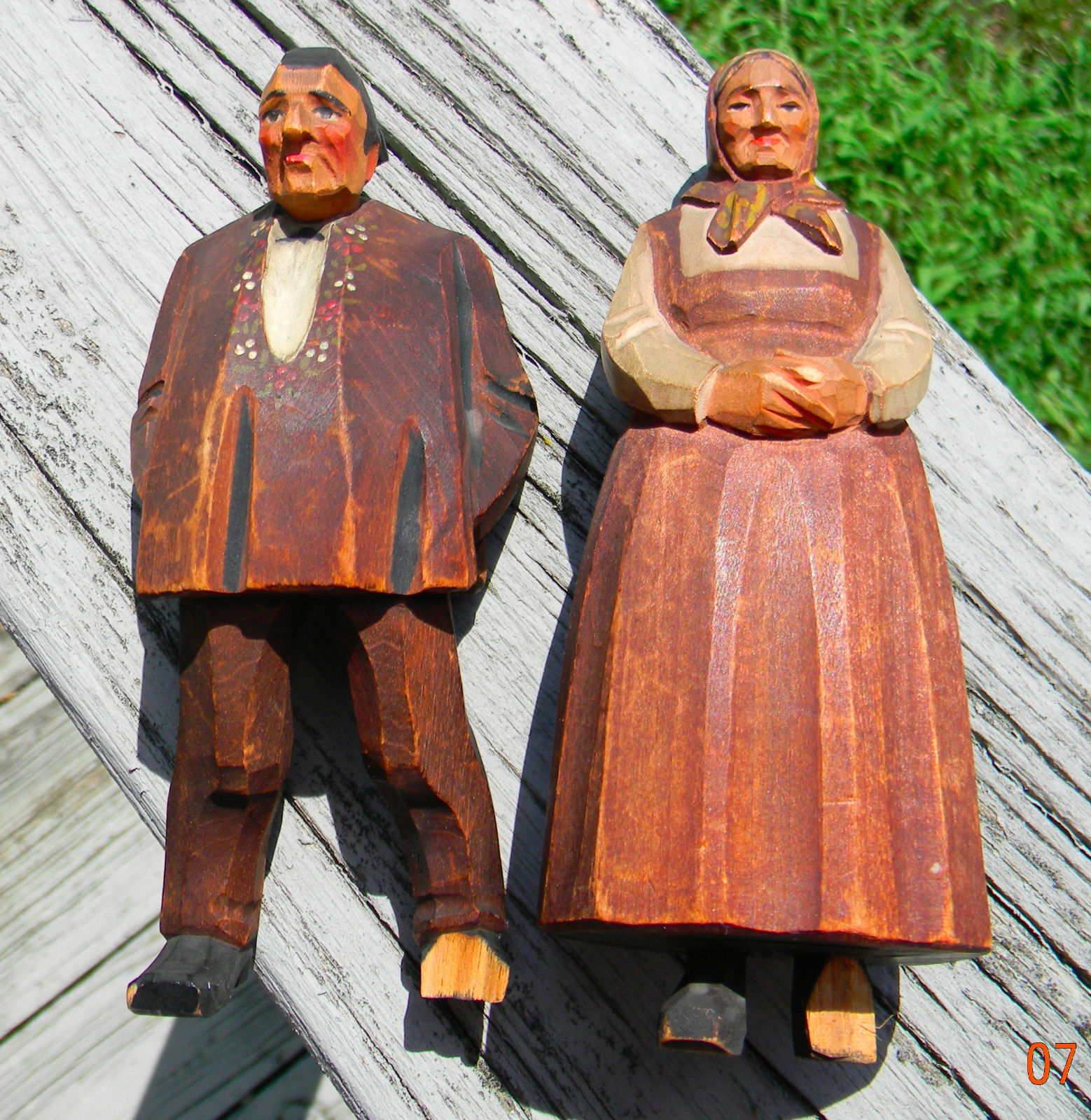 Title (ebay affiliate link): Vntg hand carved wooden folk art figures man & woman European style Swedish?
