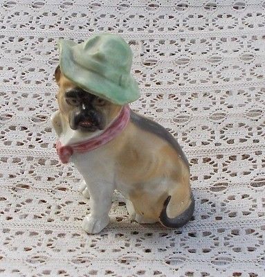 Title (ebay affiliate link): RARE Vintage Antique 5" Bull Dog In Hat Bisque Porcelain Figurine German LOOK NR