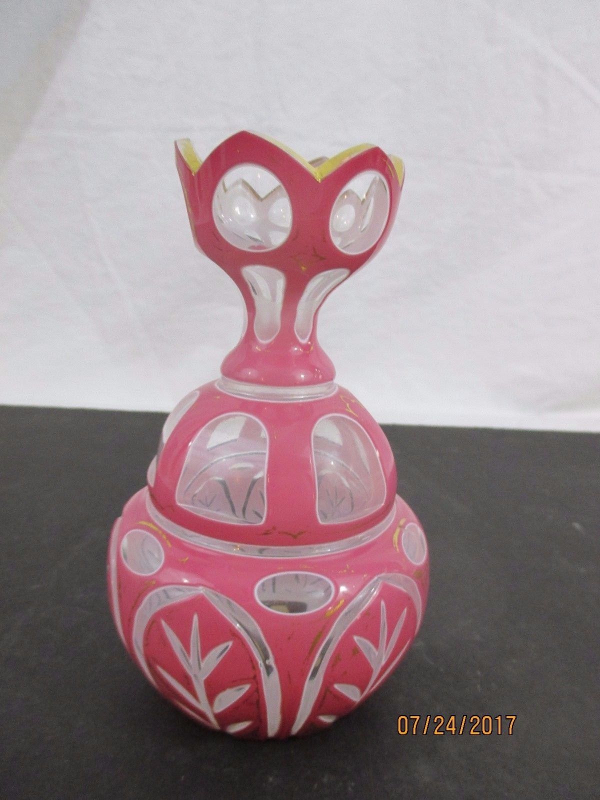 Title (ebay affiliate link): VICTORIAN ART GLASS DOUBLE OVERLAY CUT GLASS PERFUME OR SCENT BOTTLE