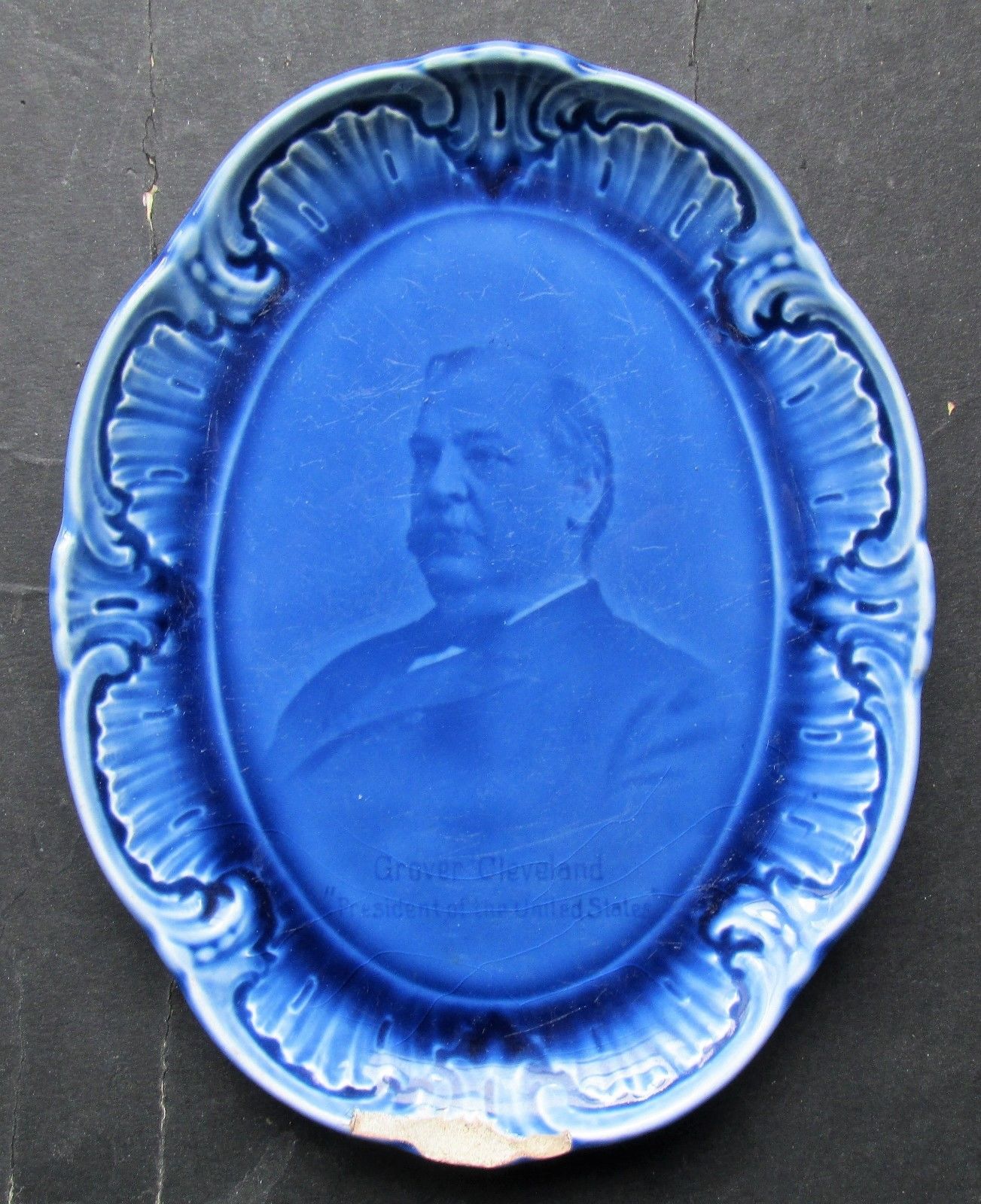 President Grover Cleveland Blue German Ceramic Stoneware Dish or Tray