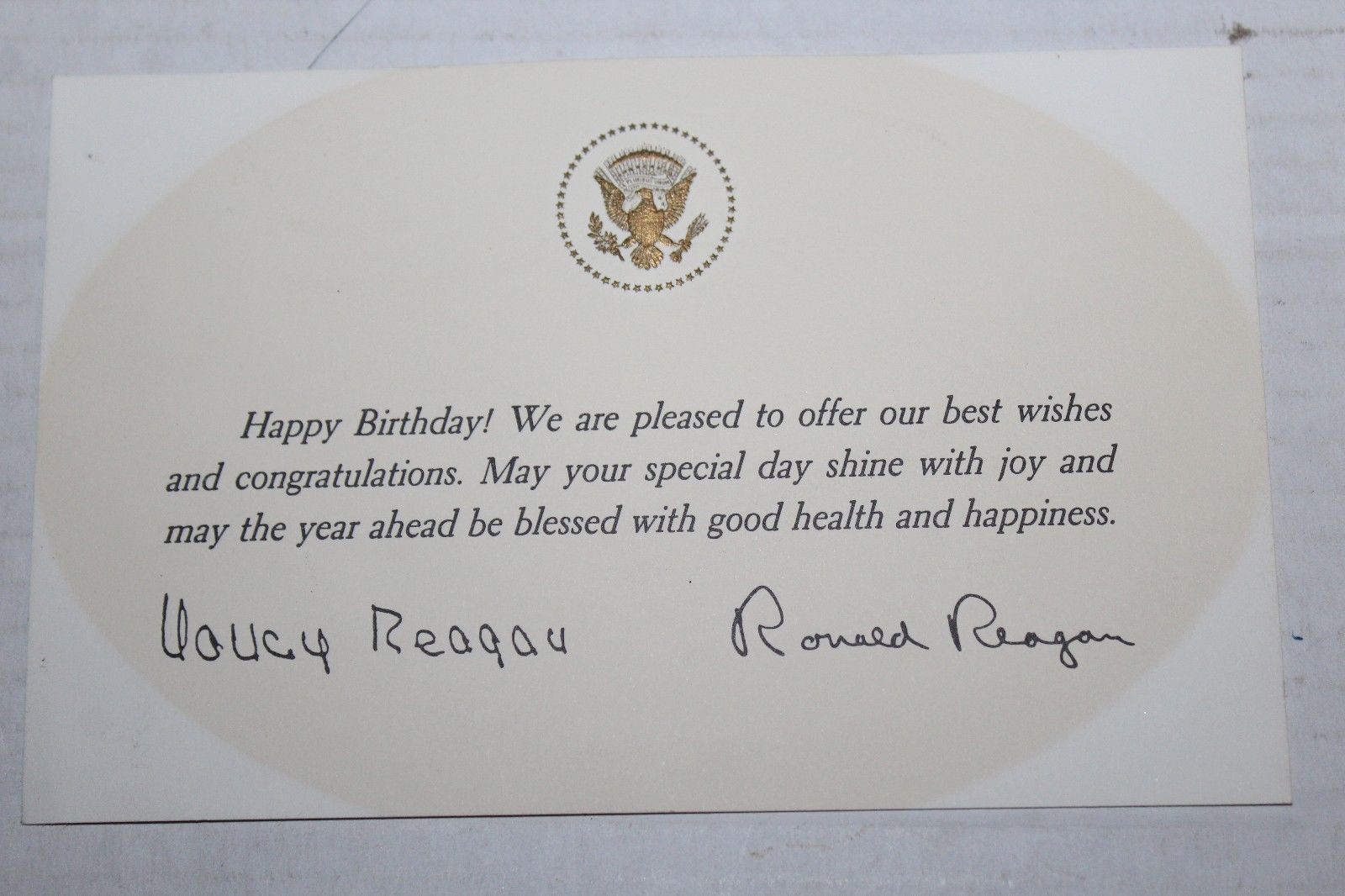 Ronald Reagan Nancy Reagan Happy Birthday Card Signed Presidential Seal