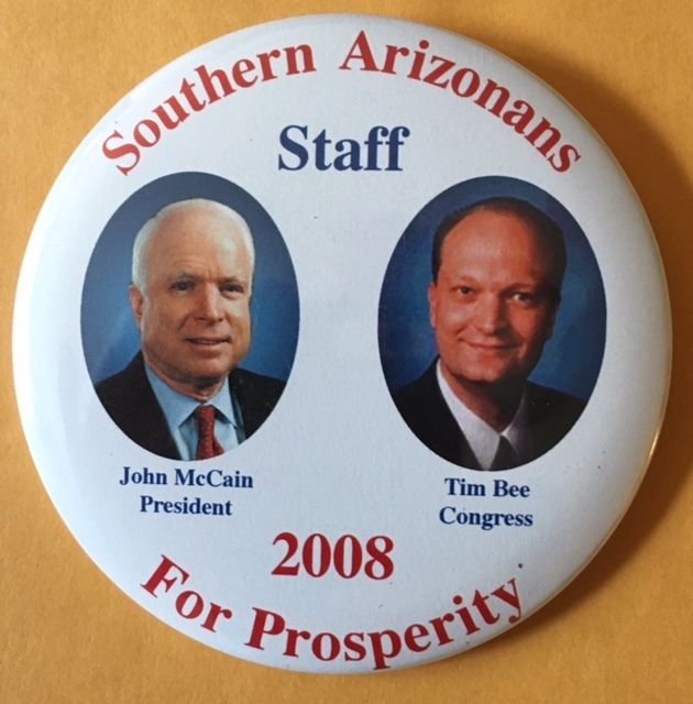 Donated 3'''' McCain-Bee Southern Arizona Staff Political Pinback For Charity