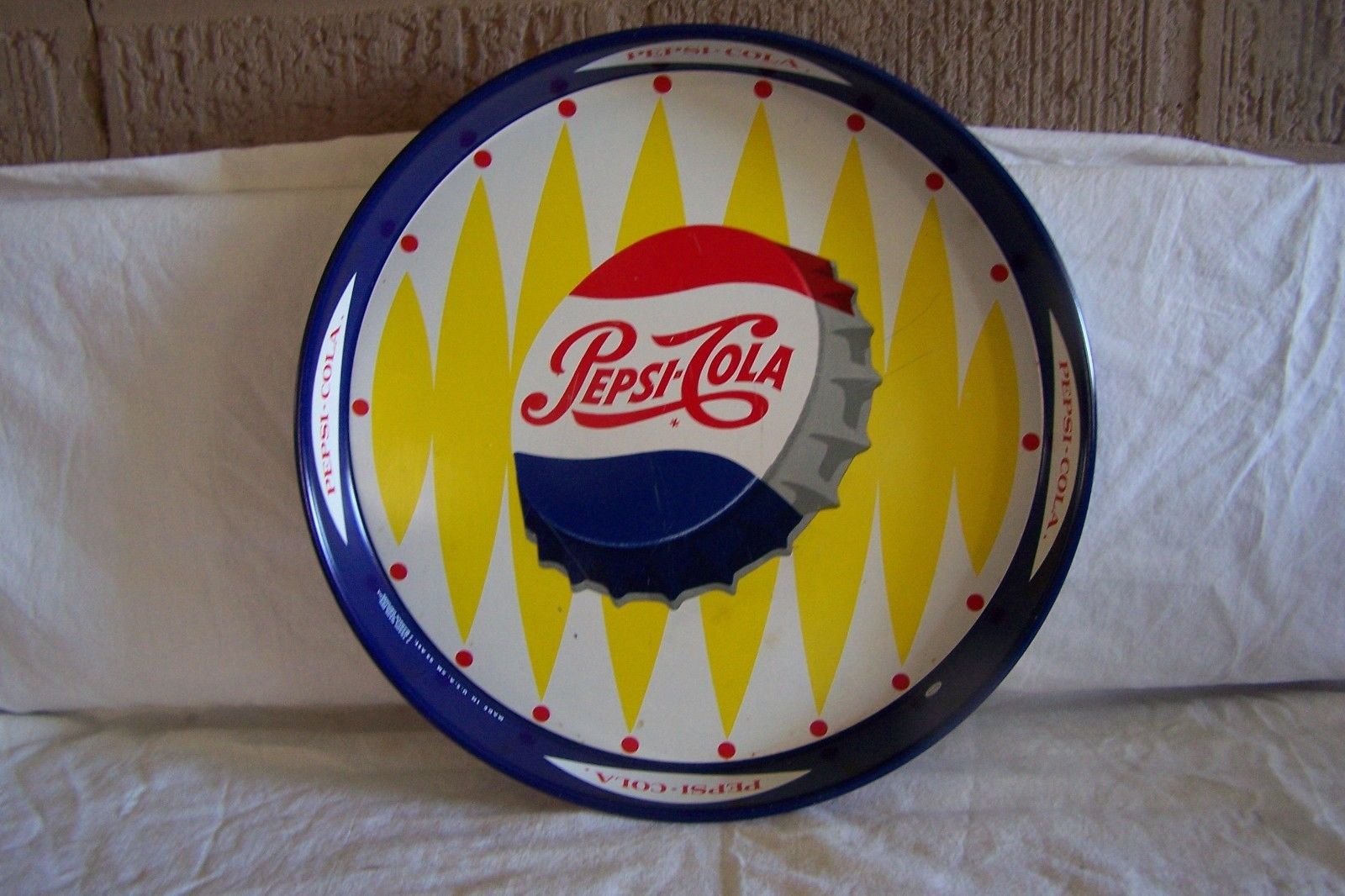 VTG. Orig. PEPSI COLA 12" SODA BAR Advertising Metal Serving Tray Plate Platter