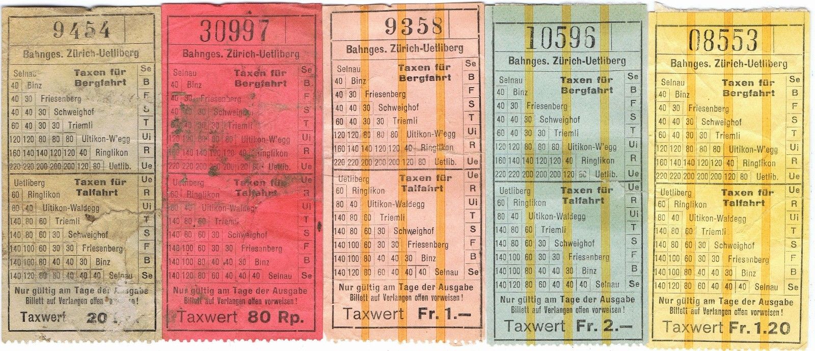 Railway tickets Switzerland Zurcich- Uetiberg very well used paper issues