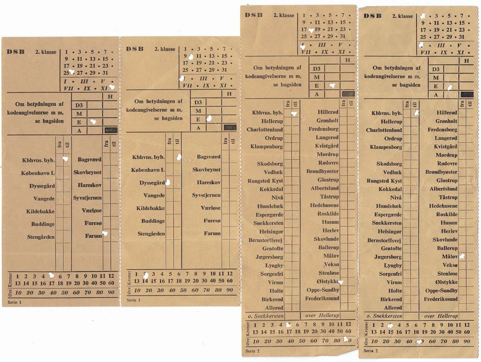 Railway tickets Denmark Danish State Railways DSB paper issues well used