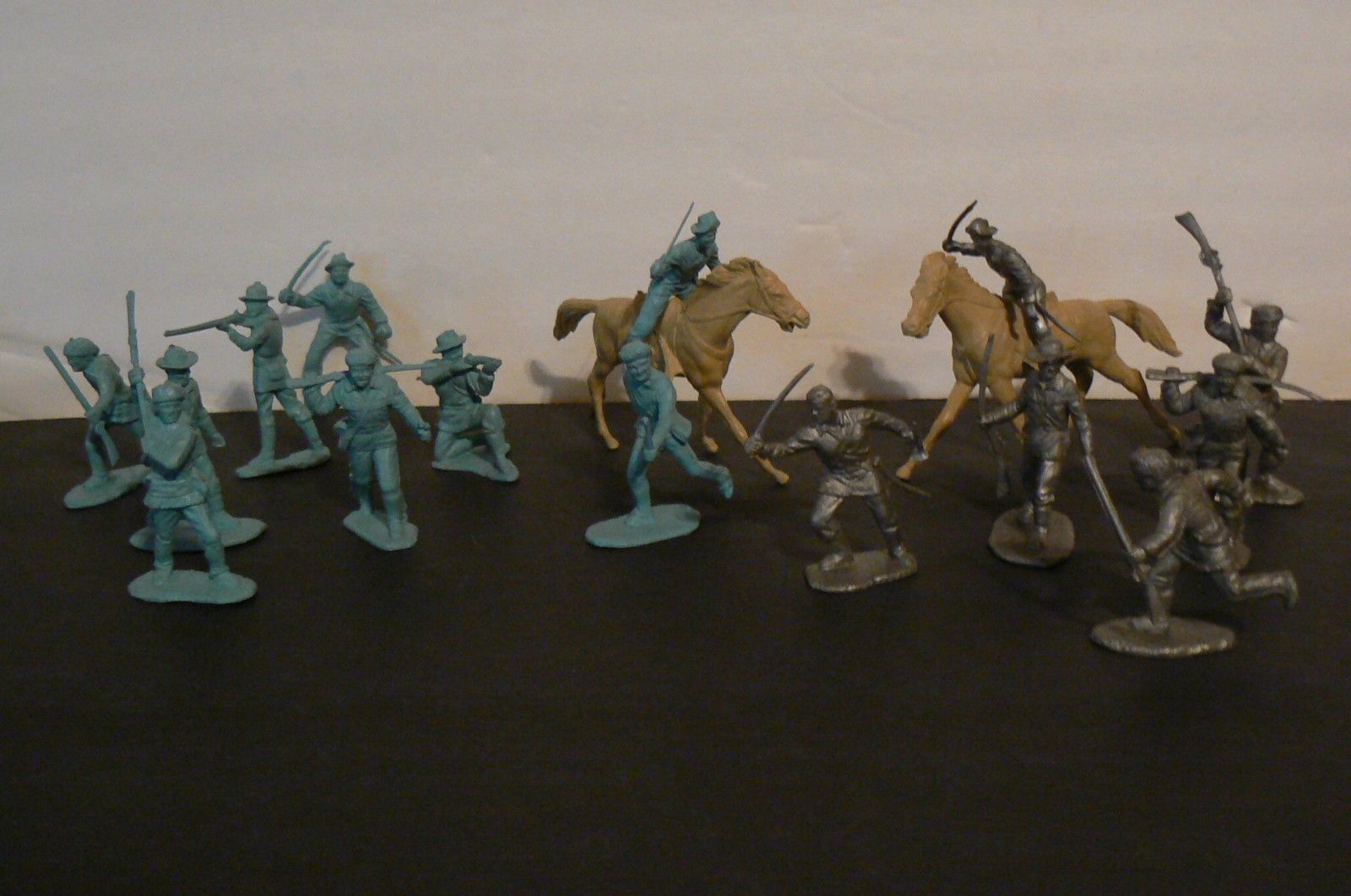 SET OF 15 BLUE & GRAY RUBBER SOLDIERS