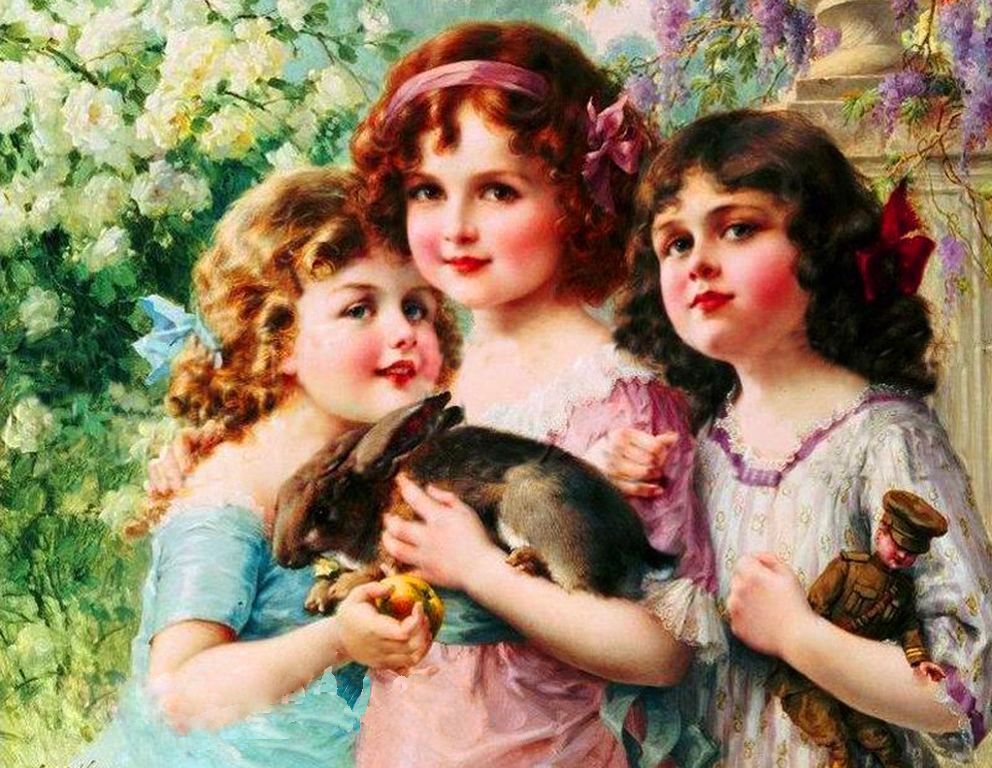 Title (ebay affiliate link): NEW! Beautiful Little Girls & Rabbit by EMIL WERNON 48 modern card reprint