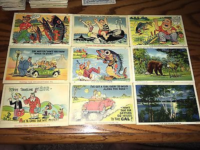 Sheakleyville PA. 9 Old Vintage Comic Linen Fishing Greetings Postcards lot
