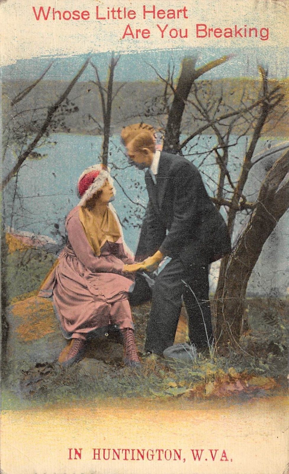 Huntington West Virginia c1910 Postcard Whose Heart Are You Breaking Romance