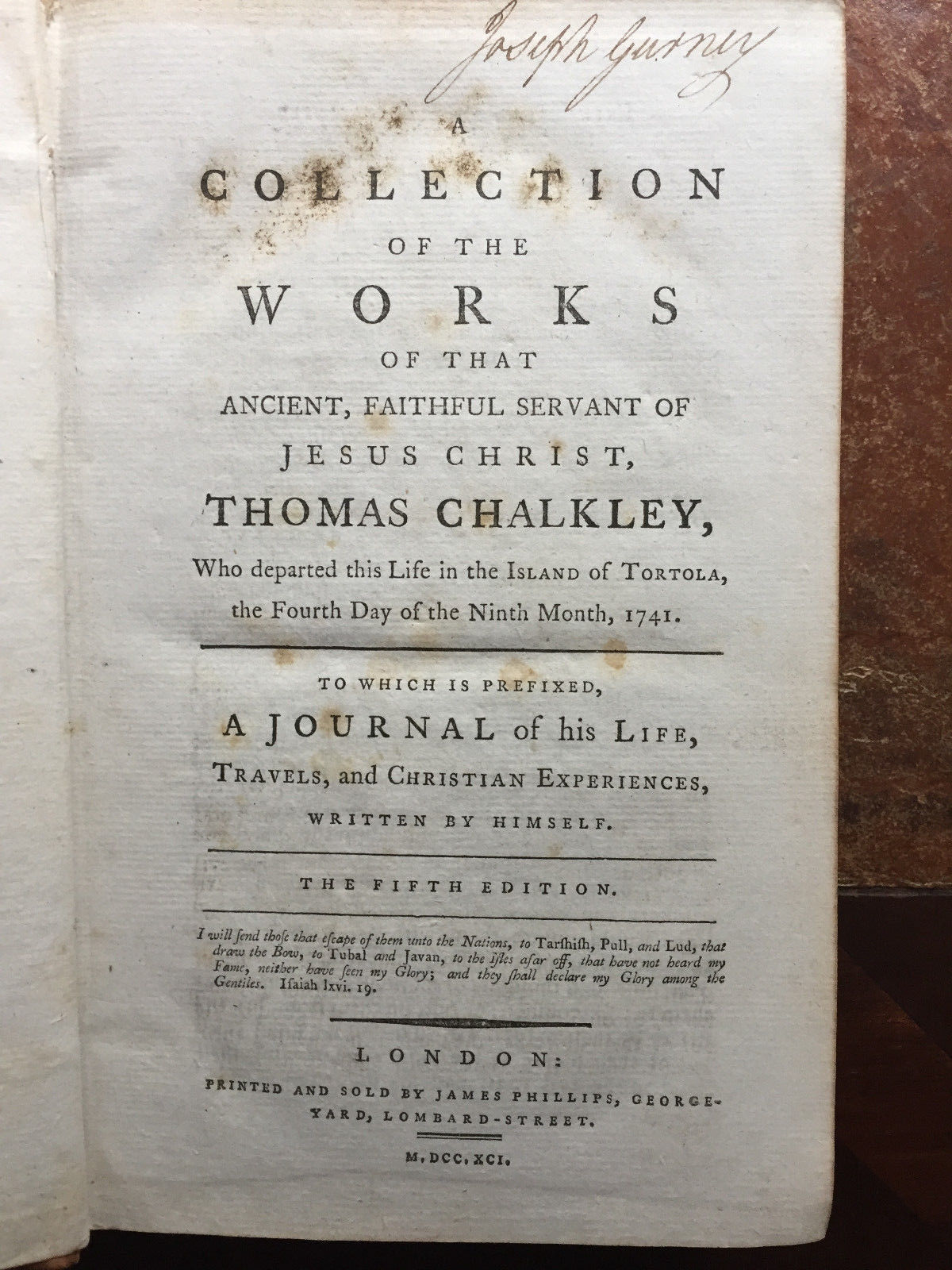 Title (ebay affiliate link): 1791-A Collection Of The Works Of Faithful Servant Of Christ, Thomas Chalkley
