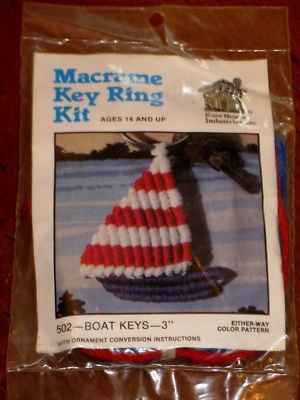 Title (ebay affiliate link): SAILBOAT NIP Vintage Macrame Key Ring CHRISTMAS Ornament Kit Key Chain NAUTICAL