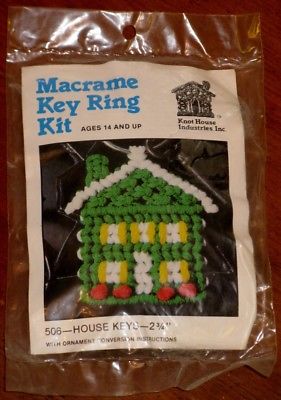 Title (ebay affiliate link): HOUSE KEYS - NIP Vintage GROOVY Macrame Key Ring - MID CENTURY Key Chain - RETRO