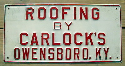 Title (ebay affiliate link): CARLOCK''S ROOFING (OWENSBORO, KENTUCKY) Painted Metal Sign ca1950s - 1960s?