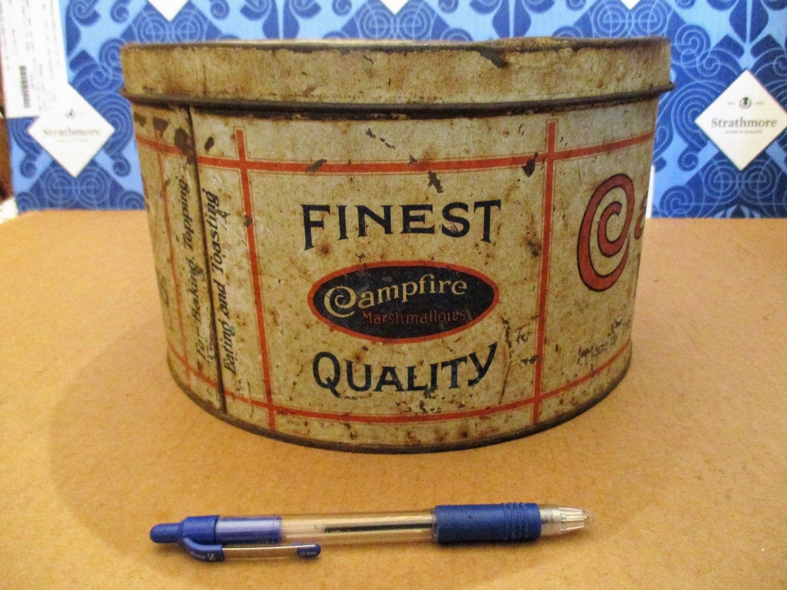 Title (ebay affiliate link): Vintage Campfire Marshmallow Advertising Tin 10'''' diameter