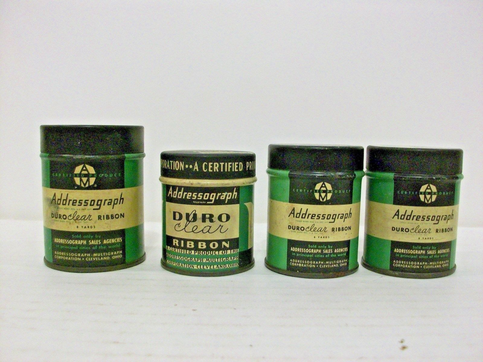 Lot of 4 Vintage Addressograph Duroclear Ribbon Tin