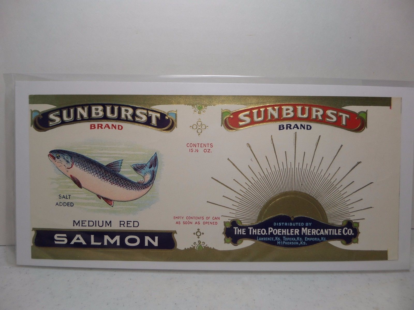 Title (ebay affiliate link): (Lot #2011) Antique Poehler Mercantile Kansas Sunburst Brand Salmon Can Label