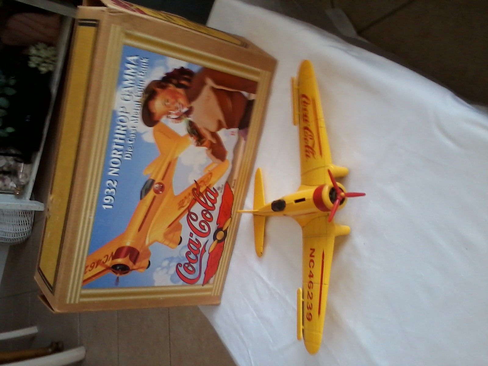 Title (ebay affiliate link): 1932 DIE CAST PLANE MODEL METAL COCA COLA COIN BANK NORTHROP GAMMA-VINTAGE