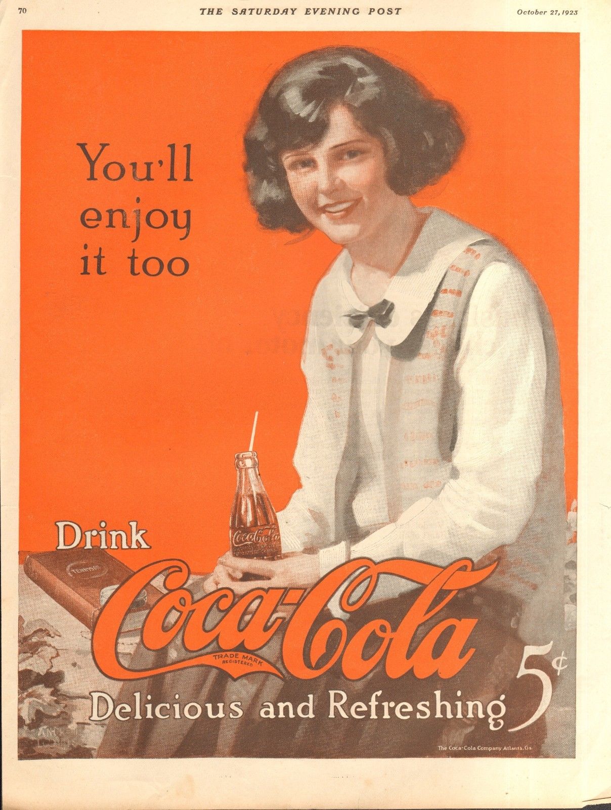 1923 COKE COCA-COLA YOU''LL ENJOY IT TOO ORIG VINTAGE CAR AUTO AD