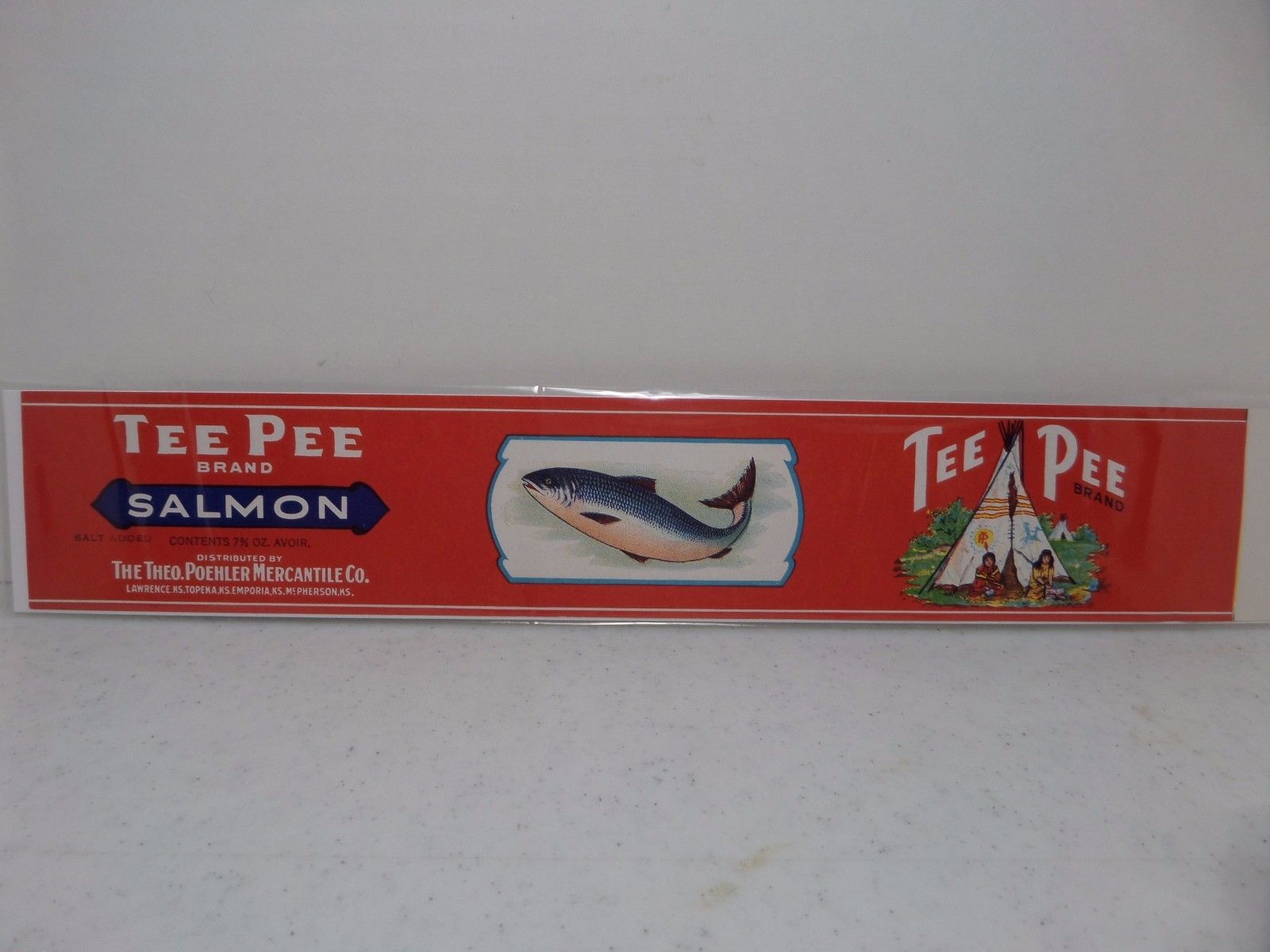 Title (ebay affiliate link): (Lot #2068) Antique Poehler Mercantile Kansas Tee Pee Brand Salmon Can Label