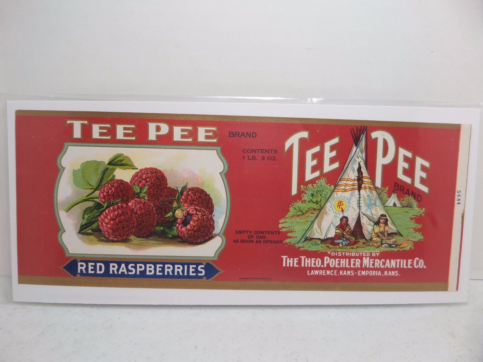 Title (ebay affiliate link): (Lot #2078) Antique Poehler Mercantile Kansas Tee Pee Brand Raspberries Label
