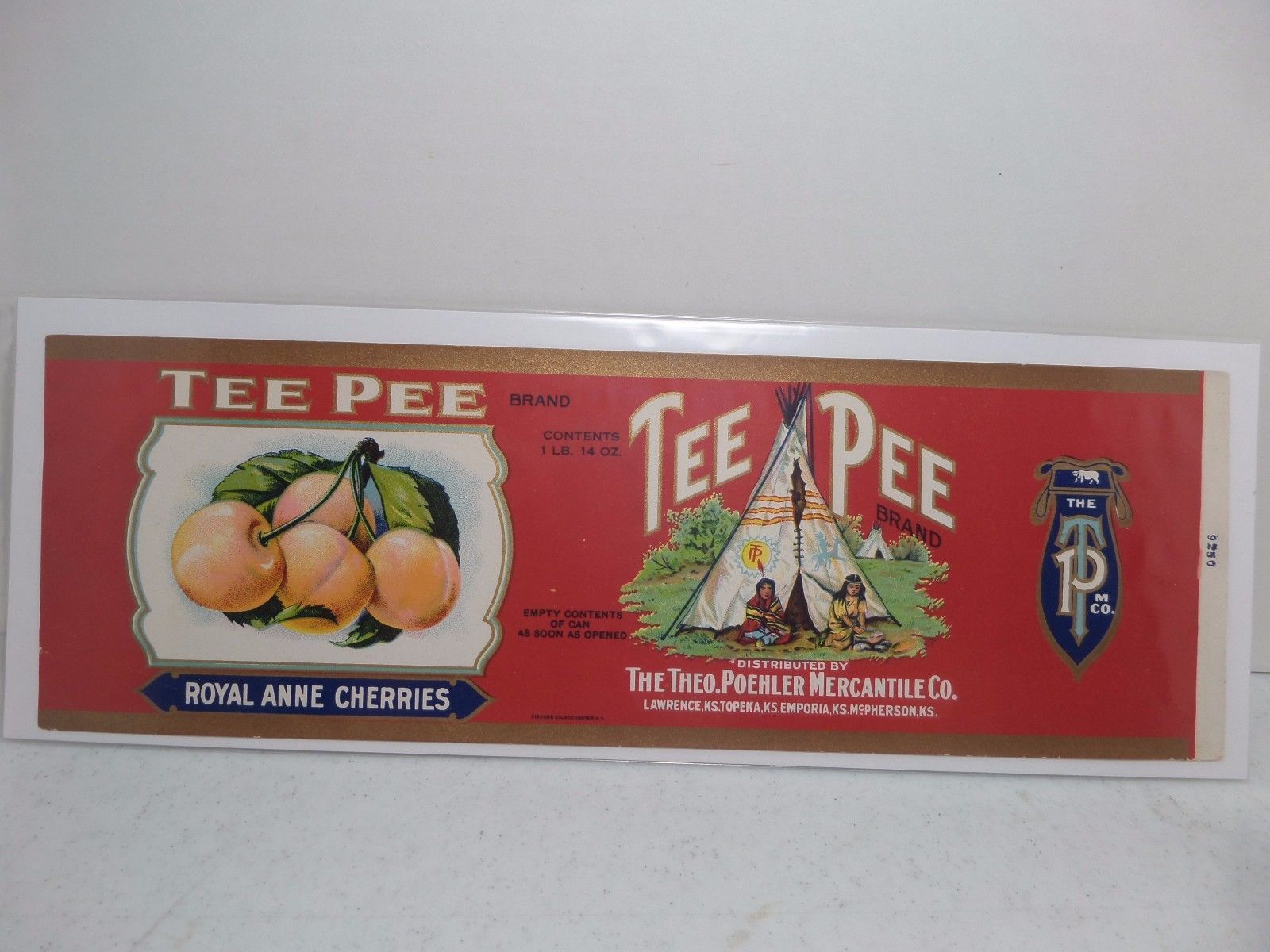 Title (ebay affiliate link): (Lot #2095) Antique Poehler Mercantile Kansas Tee Pee Brand Cherries Can Label