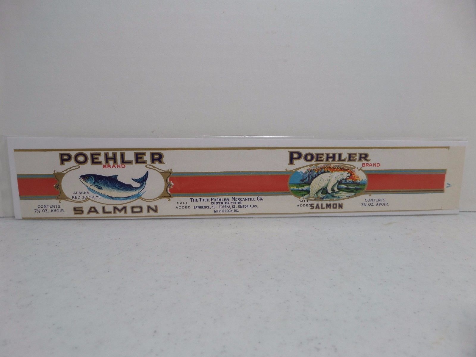 Title (ebay affiliate link): (Lot #2102) Antique Theo. Poehler Brand Mercantile Co. Kansas Salmon Can Label